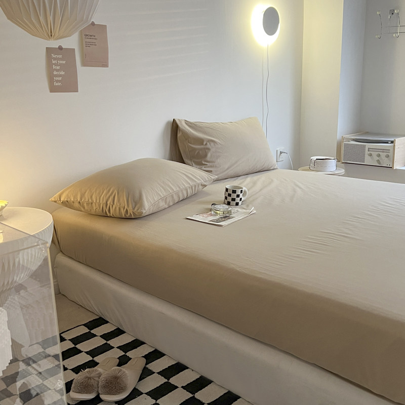 Solid color washed cotton single-piece mattress cover Simmons mattress all-inclusive dust-proof fixed non-slip protective cover can be customized