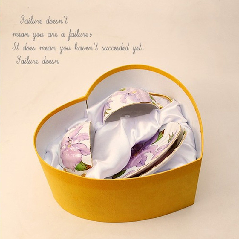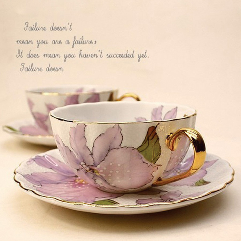 European-style coffee cup and saucer set afternoon tea British cup creative elegant and simple stroke gold edge bone china flower tea cup two cups