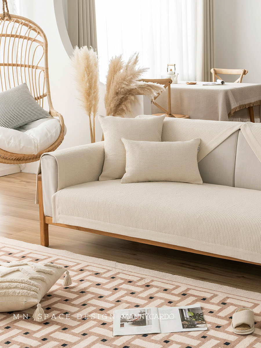 Four seasons general simple cotton and linen primary color modern weaving process thickened cover towel non-slip quality combination sofa cushion
