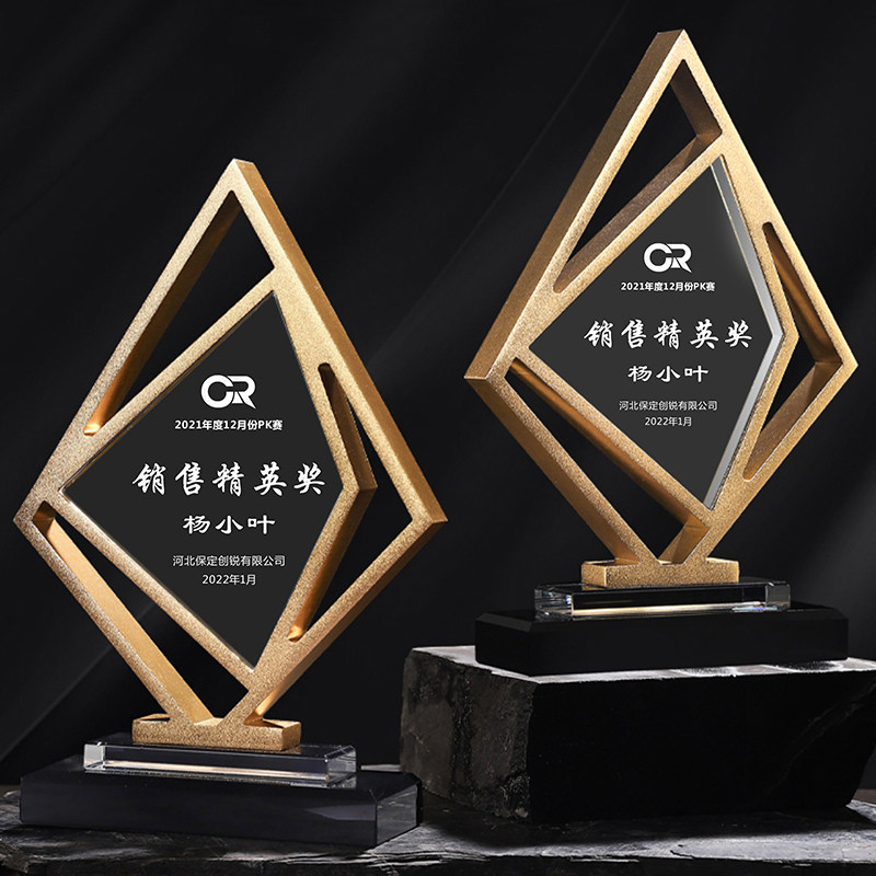 Metal Trophy customized high-end atmospheric crystal medal customized engraved glass outstanding employee memorial trophy
