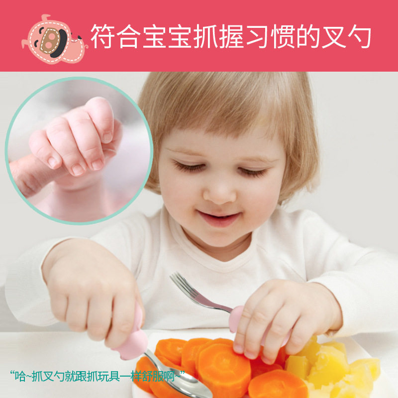 Canadian Marcus Baby Stainless Steel Short Handle Training Spoon Fork Bowl Set Children's Tableware Sucker Bowl Three Pieces