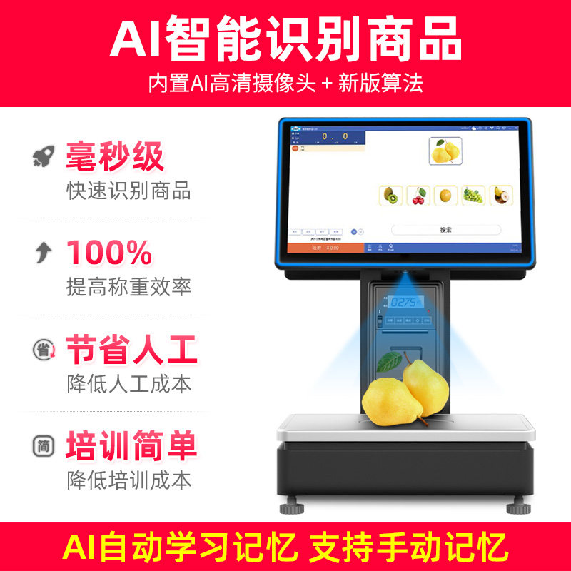 New Honey Ai Collection Silver Scales Cashier Goods Intelligent Recognition Weighing Cashing-in-silver All-in-One touch Double screen Supermarket Water Fruit Shop Fresh vegetables Cooked Food Loose Call snacks Spicy Bronzed computer cashing machine-Taobao