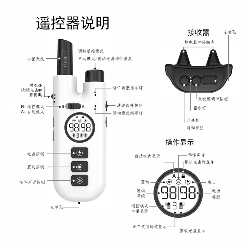 Anti-dog bark nuisance artifact anti-bark device large and small dogs electric shock vibration remote control automatic waterproof dog electric shock collar
