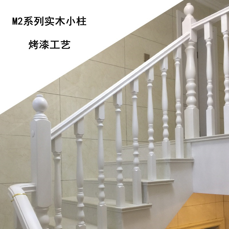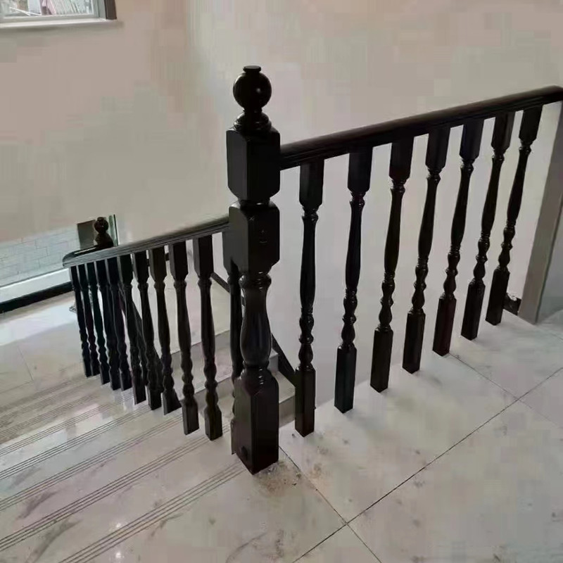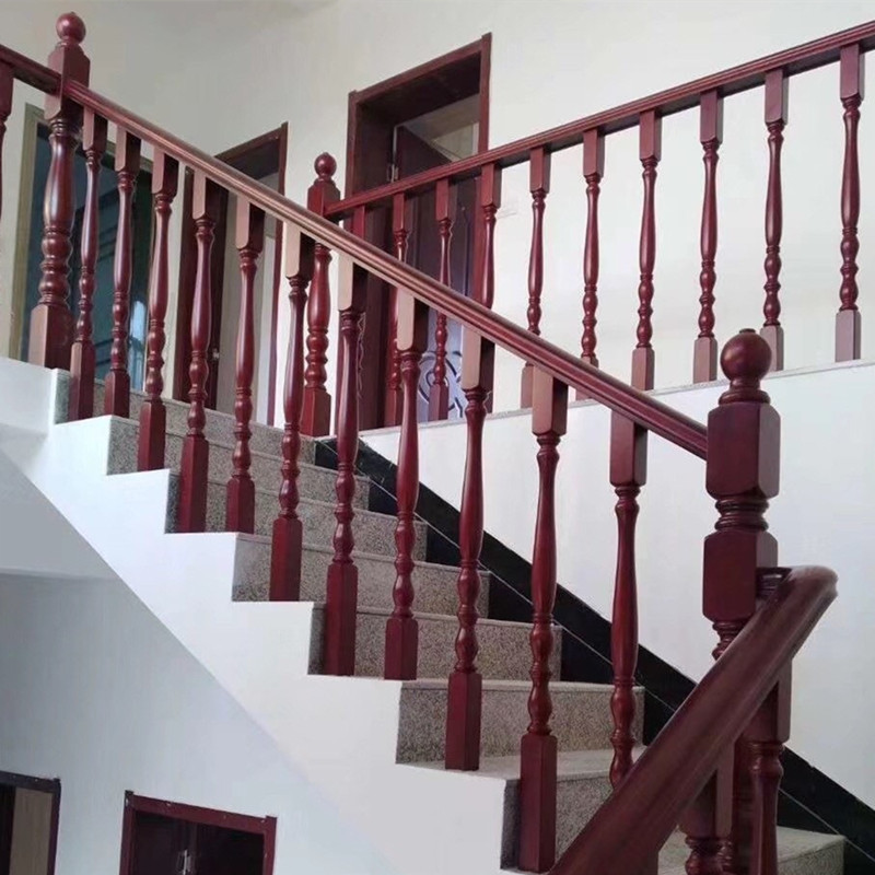 All-solid wood paint pillar stairs armrestaurant corridor platform balcony guardrail New Chinese wooden staircase railing