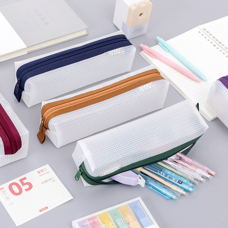 Korean high-value EVA retro square pencil case waterproof grid stationery bag ins large-capacity storage for middle school students