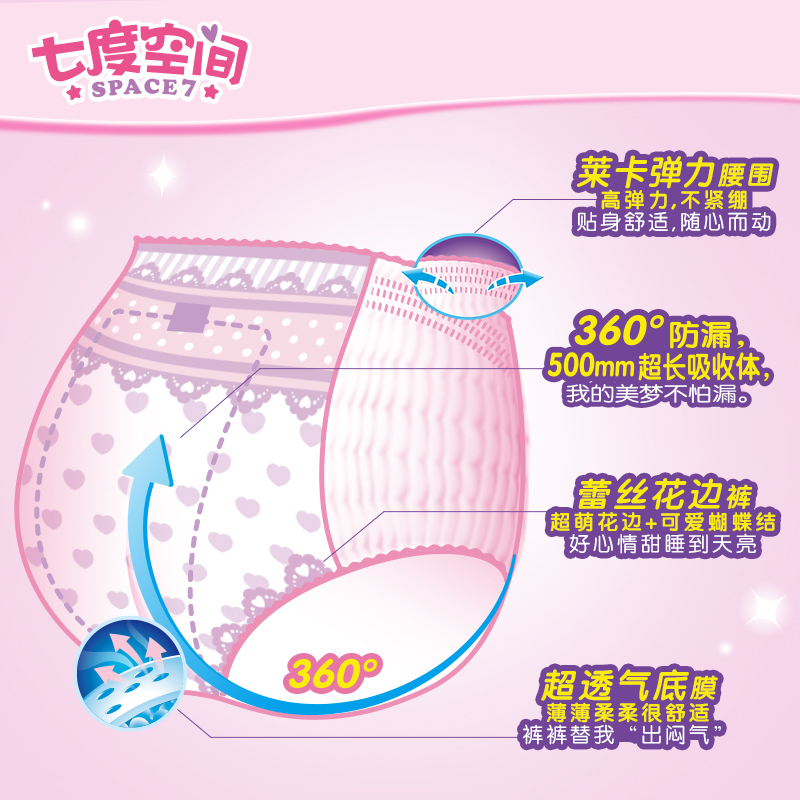 Seven - degree space teenage pants series ultra - thin long night with aunt's tissue type sanitary cotton M F average code 25 tablets