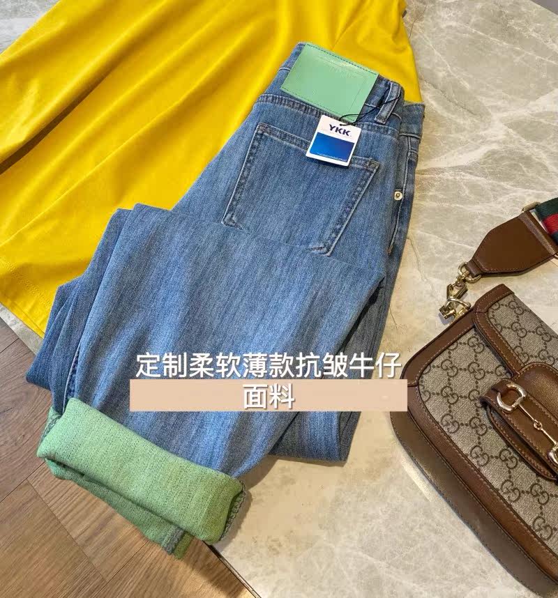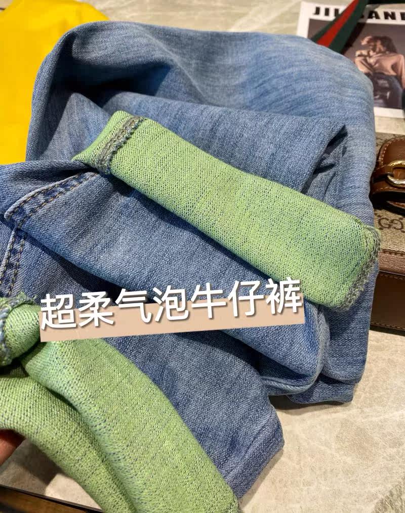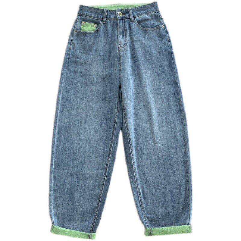 Treasure God Pants Fruit Green Contrast Color Rolled High Waist Jeans Women's 2022 New Loose and Thin Harlan Daddy Pants