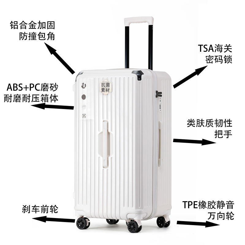 24-inch (four-wheel explosion-proof frosted zipper box) 26-inch (five-wheel dry and wet separation interior) 28-inch (five-wheel dry-wet separation interior) 30-inch (five-wheel dry-wet separation interior) 32-inch (