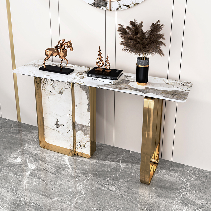 Light and luxurious stainless steel Entry rock board Xuanguan Table Bar case end View table minimalist modern living room leaning against wall corridor Decorative Cabinet-Taobao