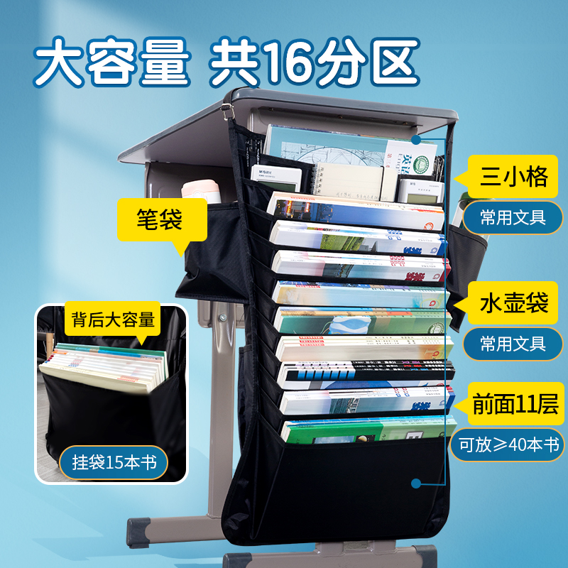 Morning light stationery hanging book bag large capacity high school student desk containing junior high school student hanging table desk side book standing hanging bag classroom book table top shelf multifunctional theorist table edge with release book-Taobao