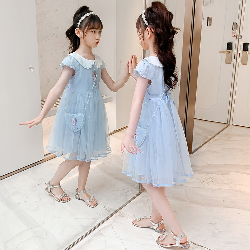 Girl Summer Dress Frozen Kids Ocean Aisha Net Dress Little Girl Fashionable Princess Aisha Dress