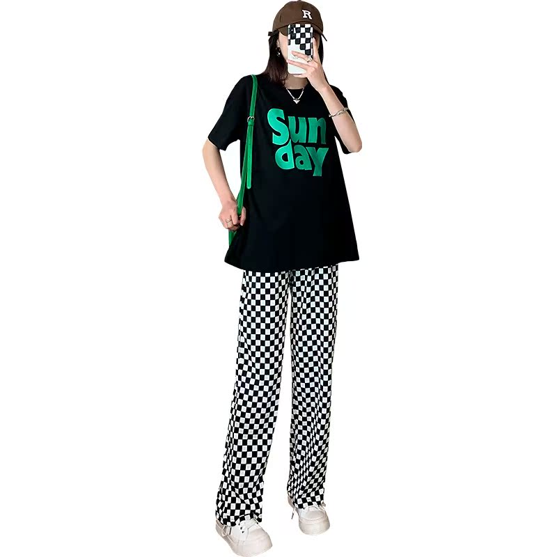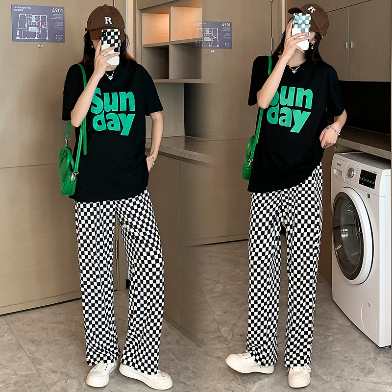 Pregnant Woman Summer Clothing Suit Out of fashion Short sleeves Long pants Summer Summer Thin net red tides Mother Leisure Two-style