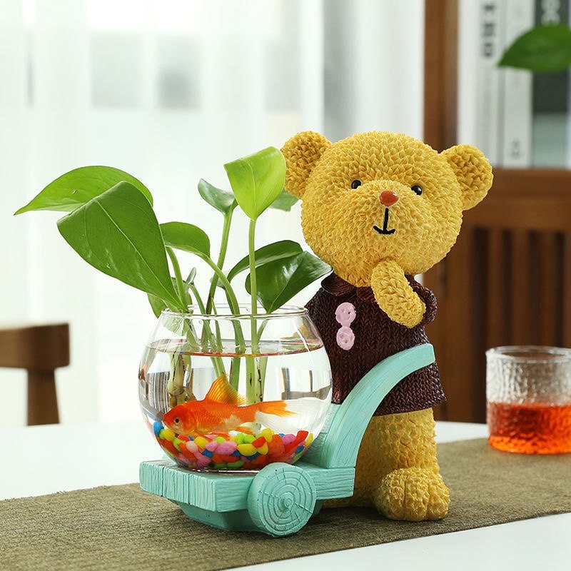 Creative hydroponic cartoon plant vase transparent gold Ge glass hydroponic flowers desktop decoration living room resin flower