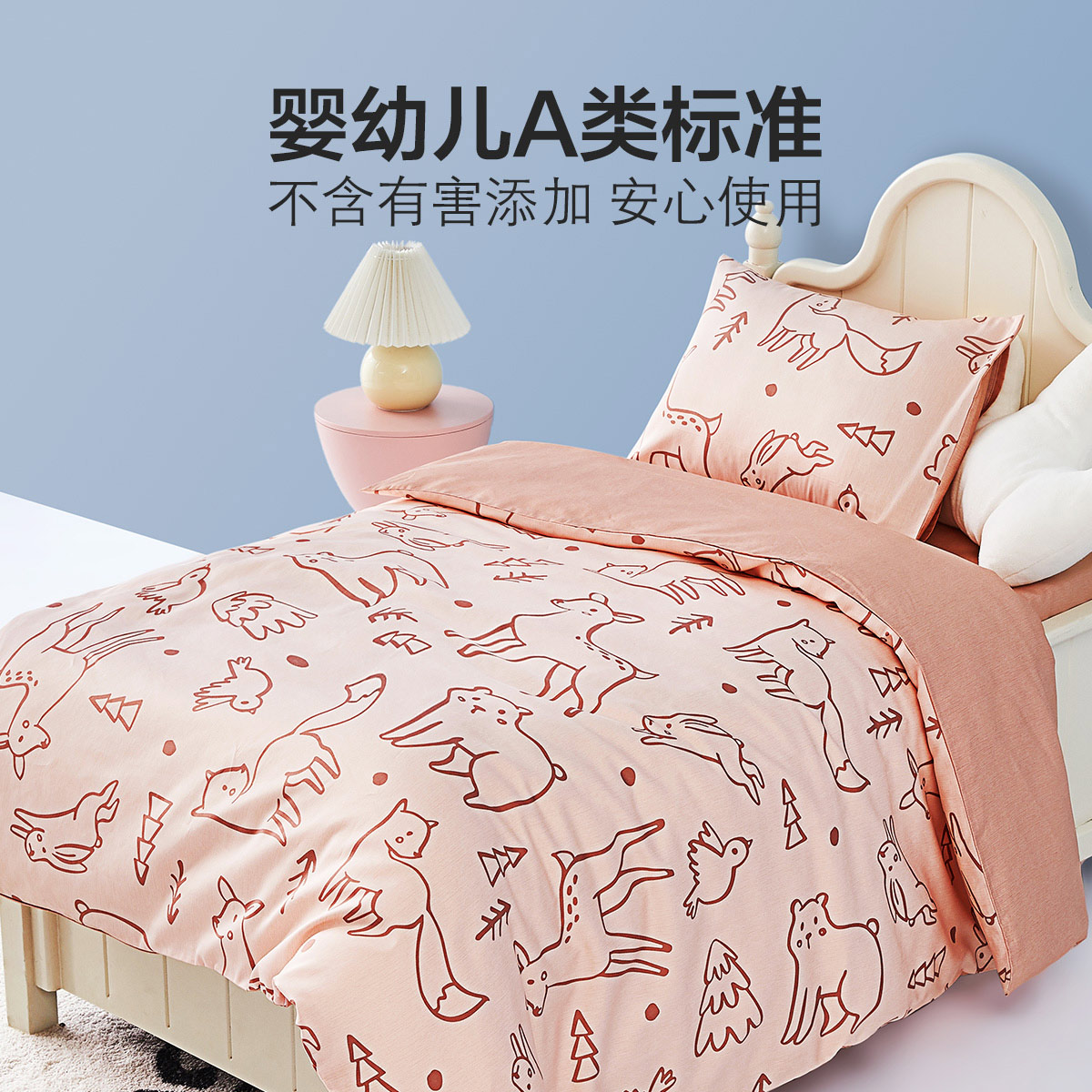 Mercury Kids 60S Long Queen Cotton Kindergarten Children Antibacterial Cartoon All - Cotton 3 piece of Warm Forest New