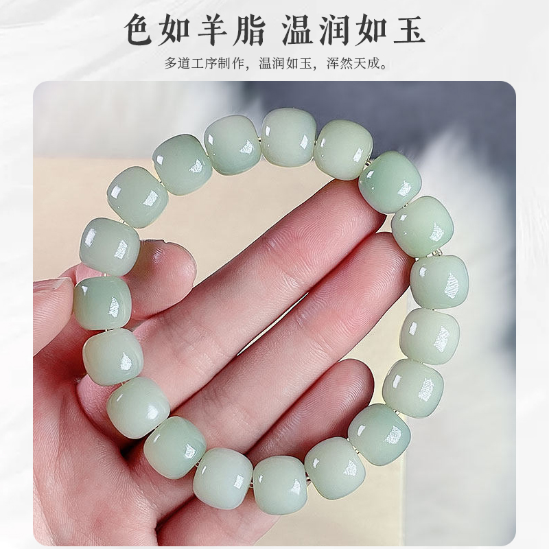 The gradual layer of white jade Bodhi root bracelet with female winding finger Johan playing Bodhi Buddha Pearl Handheld the green pubic leather male disc to play handmade