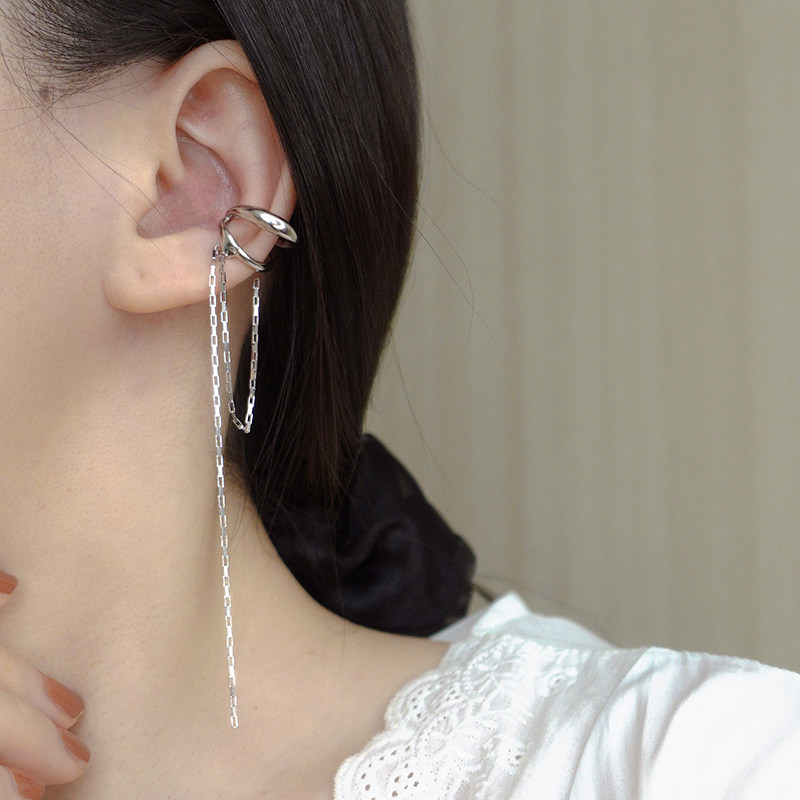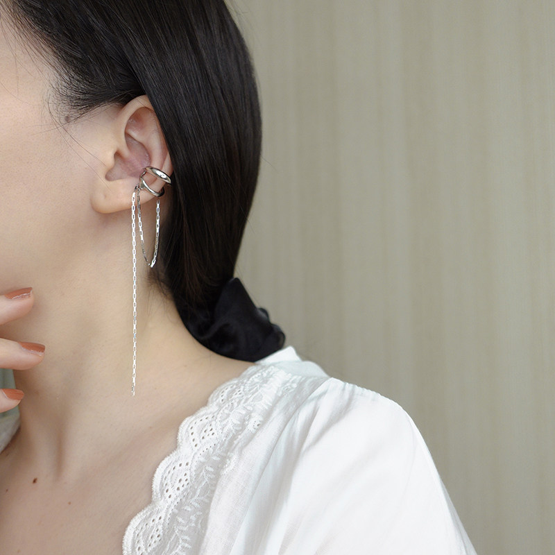 Sterling silver tassel elf earbone clip for women without ear holes long version temperament high-end niche unique clip earbone ear clip