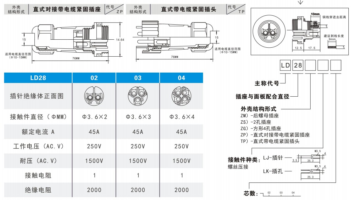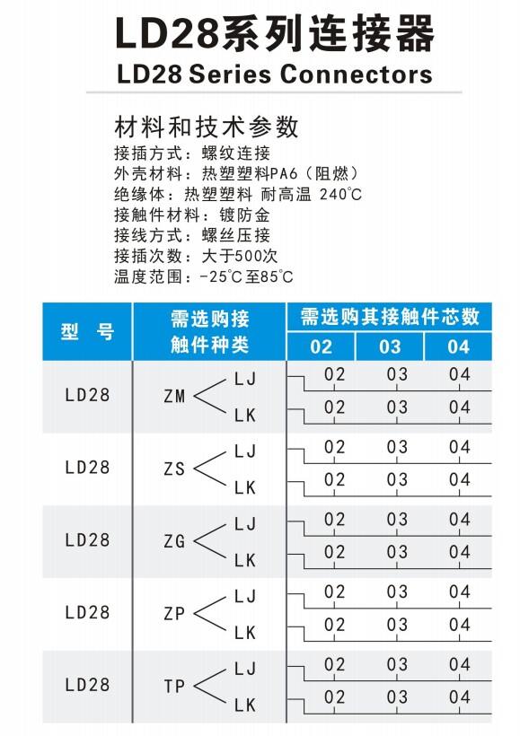 LD16-2 cores(20A)LD16-3 cores(10A)LD16-4 cores(5A)LD20-2 cores(25A)LD20-3 cores(25A)L