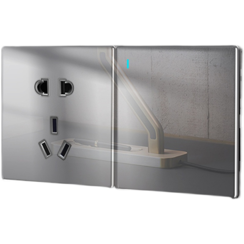 Ultra-thin tempered glass 2-position diced multi-control switch home double open triple-control one-in-midway socket panel