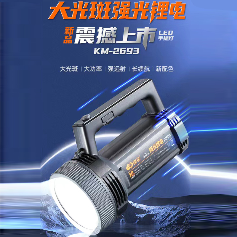 Kangming lithium battery high-power flashlight strong light charging multi-function outdoor household long-range led portable lamp