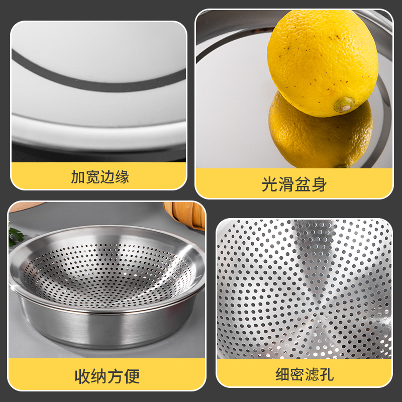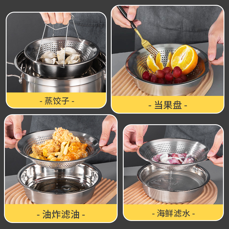 Thick 304 stainless steel basin asphalt basin kitchen Taomi basin pot puff disk double - layer leaky fruit basin