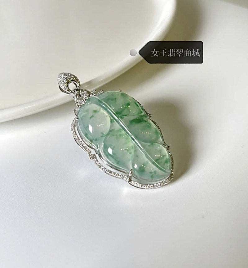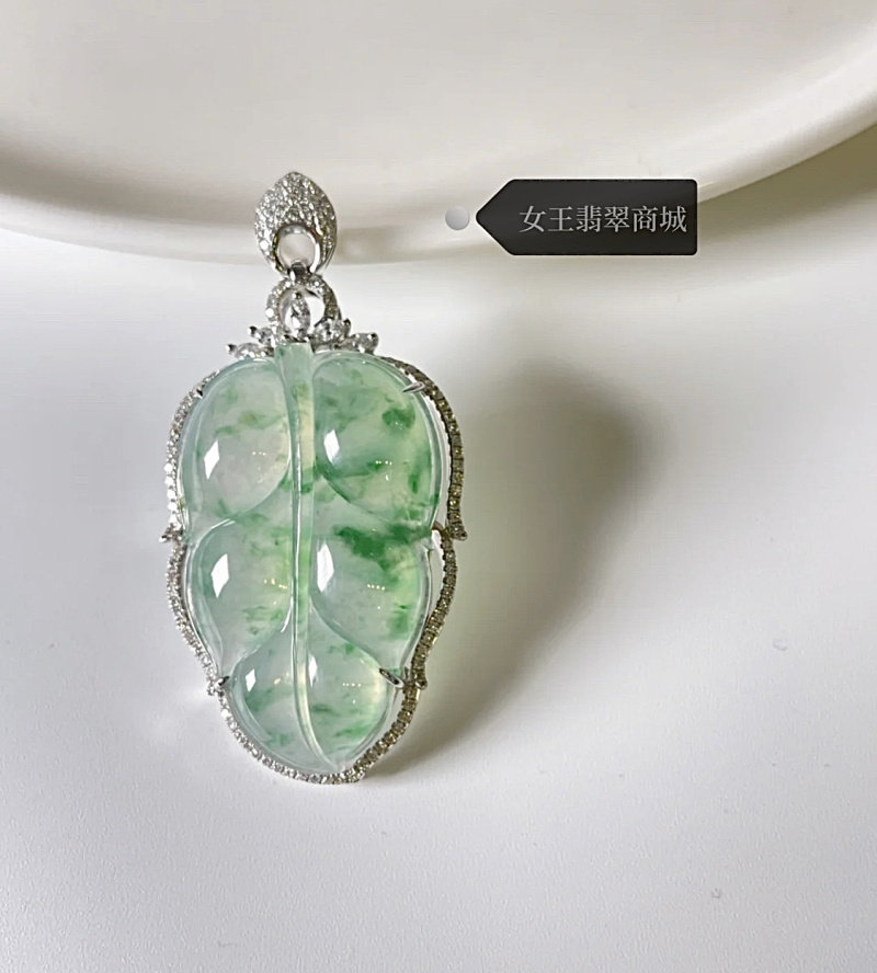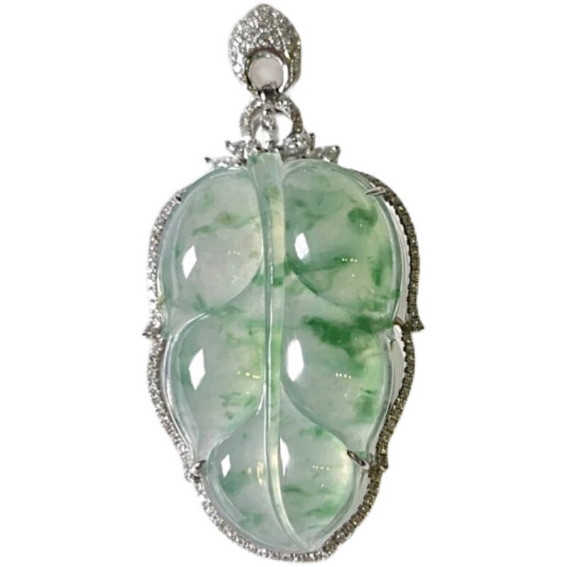 Natural Burmese ice emerald leaf pendant A cargo floating necklace 18 k gold inlaid glass - based jade leaf Buddha