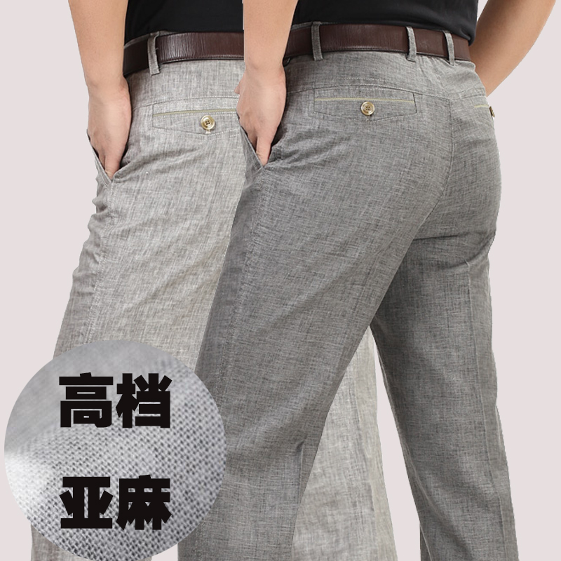 New summer ice silk linen pants men's middle-aged and elderly father's pants loose high-waisted cotton and linen middle-aged breathable summer pants