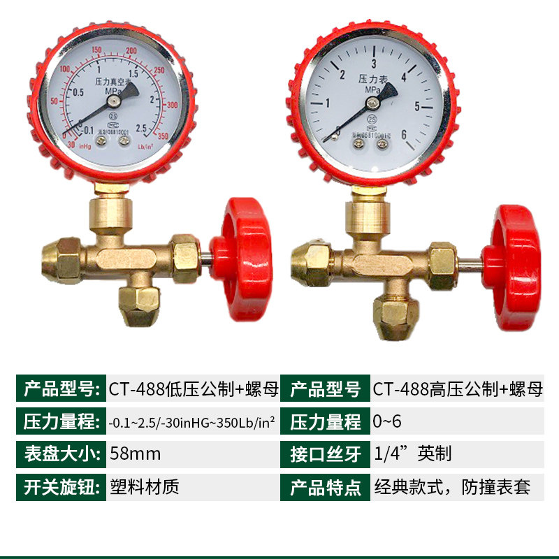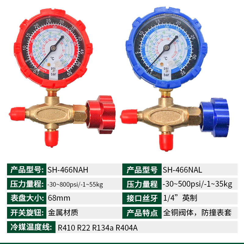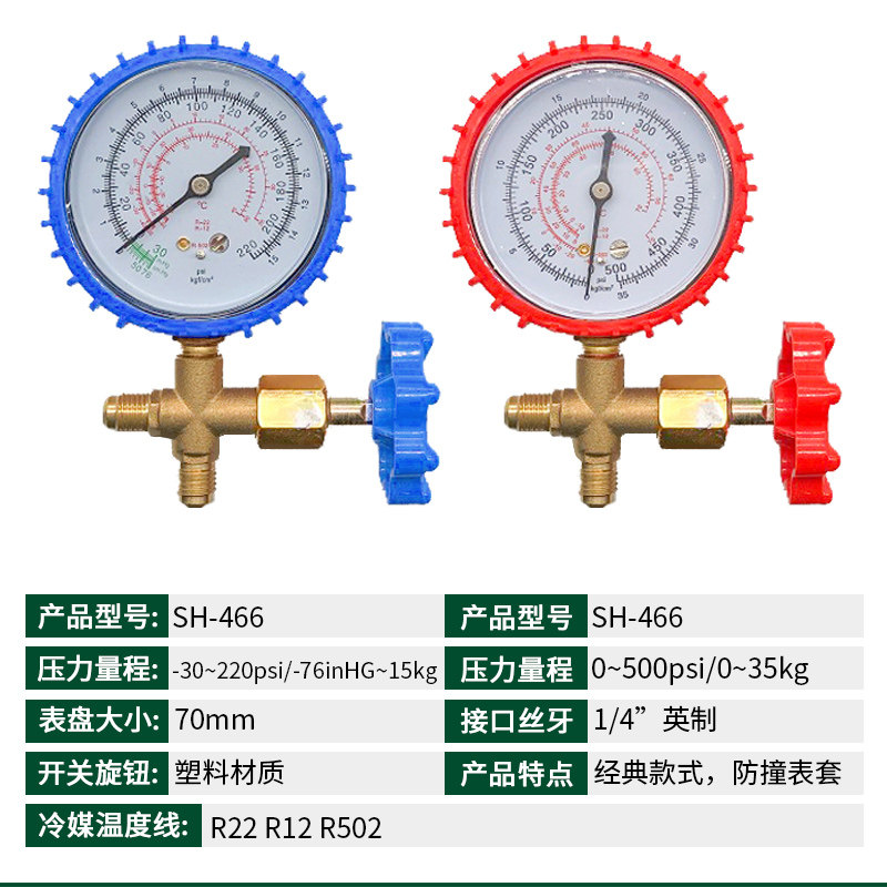 Air conditioner fluoride table R22R134R410 refrigerant table refrigerant pressure gauge valve car air conditioner refrigerator fluoride tool
