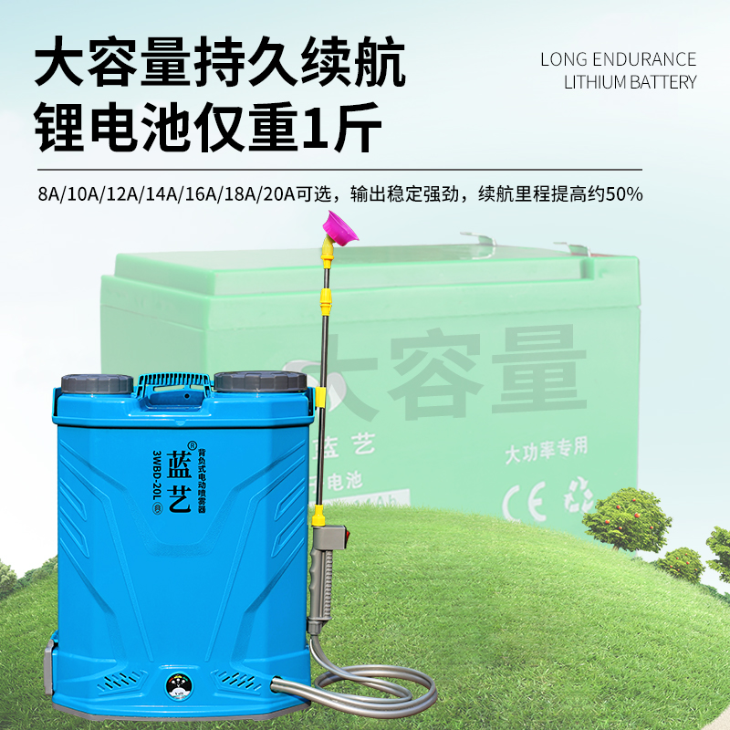 16 liters fixed speed (limited to one) lithium battery 16 liters three switches (lithium battery high pressure pump) 8 amps 18 liters three switches (lithium battery high pressure pump) 8 amps 20 liters three switches (lithium battery high pressure pump)
