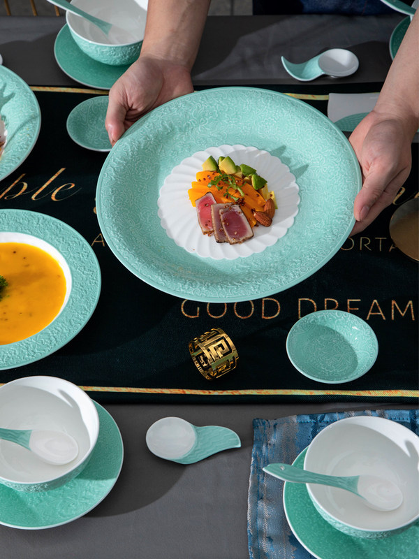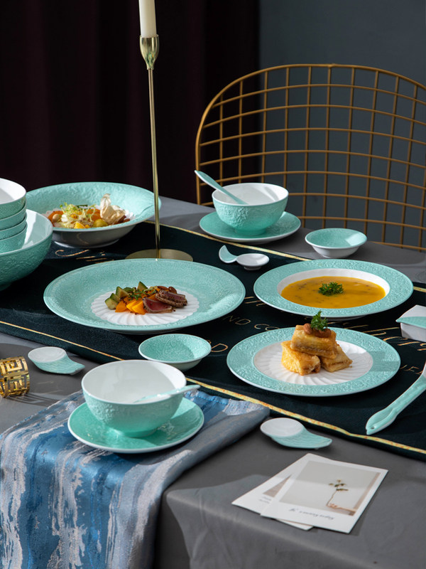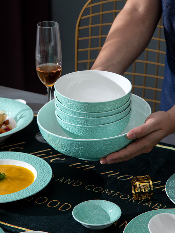 Embossed pure blue tableware for 4 people, 22 pieces in a gift box, embossed pure blue tableware for 6 people, 38 pieces in a gift box, embossed pure blue tableware for 8 people, 50 pieces in a gift box, embossed pure blue tableware for 10 people, 52 pieces in a gift box