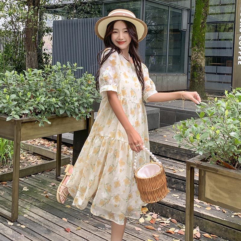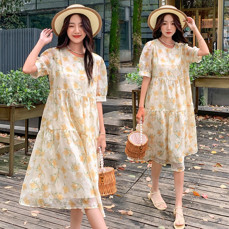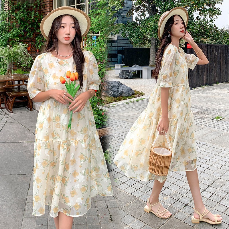 Pregnant woman Skirt Summer Fashion style 2022 New summer dress Crushed Flowers Skirt Mid Korean version of pregnant women's foreign dress