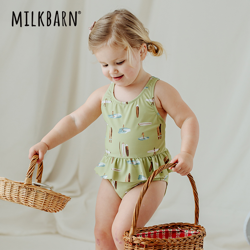 Milkbarn2024 new product children's summer swimsuit girls one-piece triangle swimsuit bottoms girl's split swimsuit