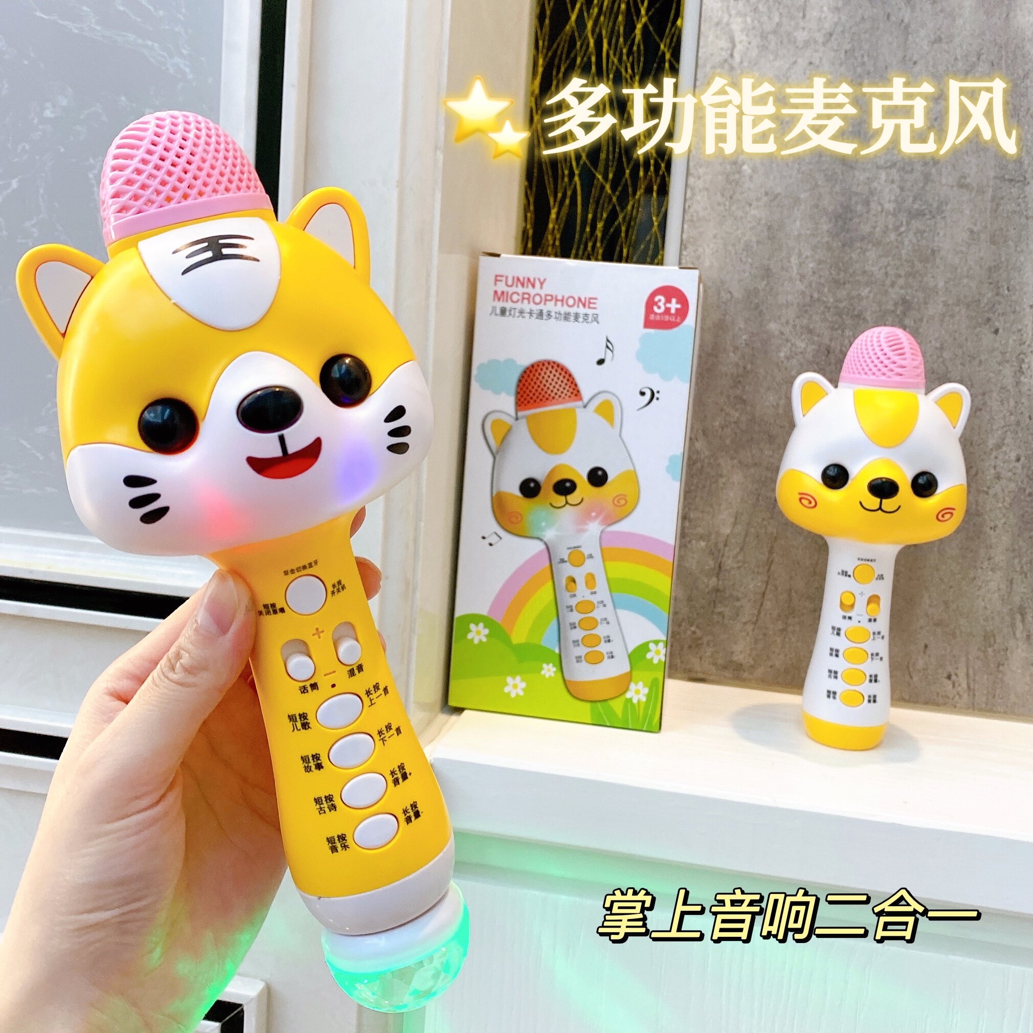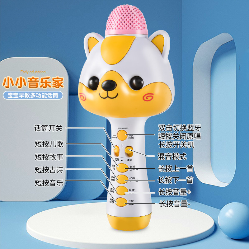Children's cartoon small microphone toy multi-functional Bluetooth sound one microphone light baby singing machine girl