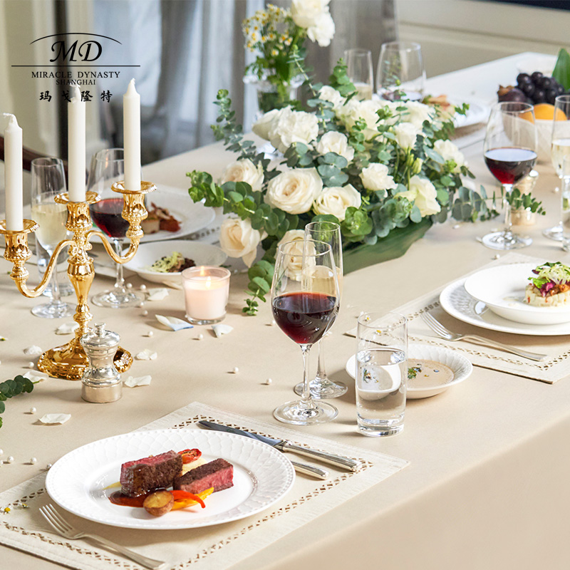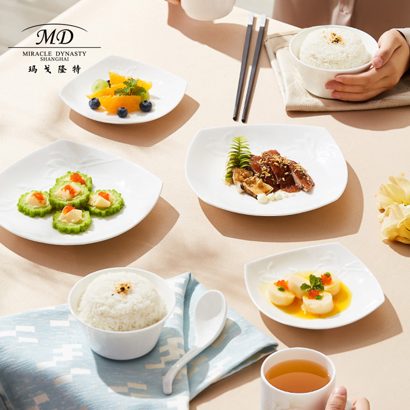Magalonte pure white underglaze relief bone china household tableware set dishes high-end high-value gift box packaging