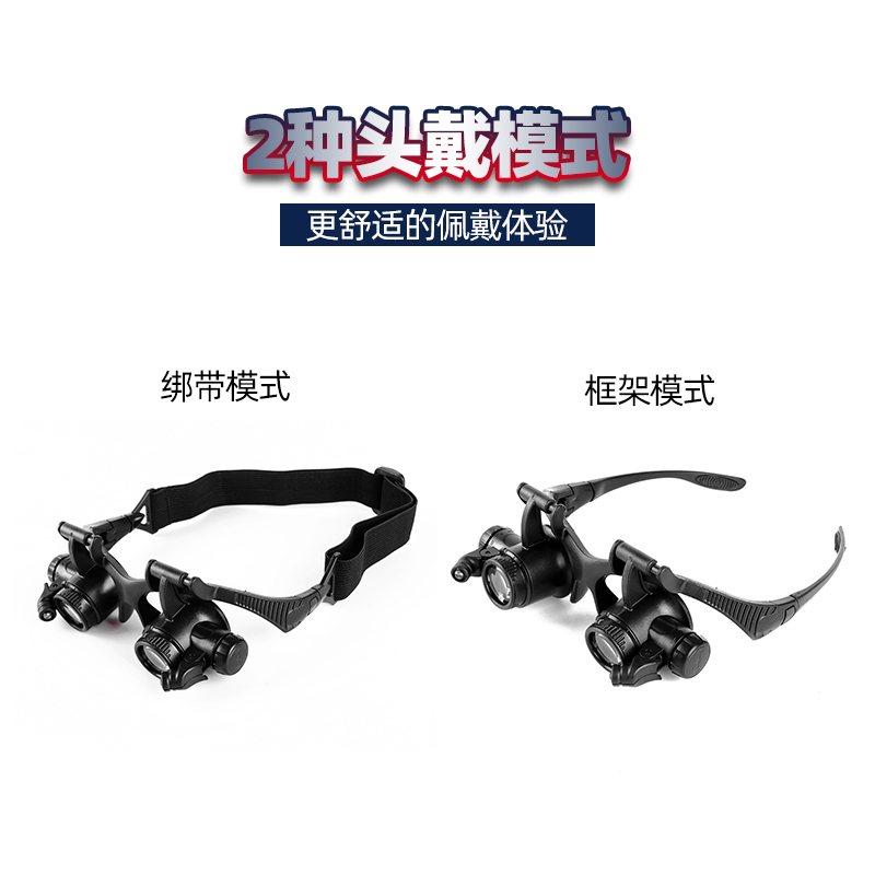 Head-mounted magnifying glasses type high-power HD repair with lamp clock watch special tool headband 1000