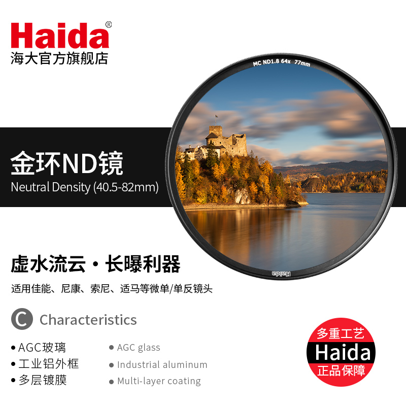 Haida Sea Large Gold Ring ND Dimmer Mirror Medium Grey Density Mirror Bifacial Multilayer Coated Filter Lens Suitable For Microalone Anti-Camera Lens such as Canon Nikon Sony Foxes-Taobao