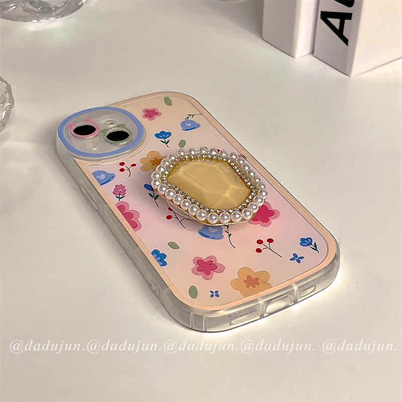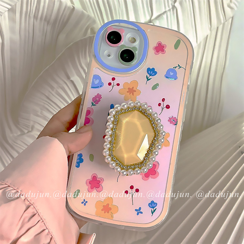 Japan, South Korea, Japanese floral pearl gem bracket is suitable for Apple 13promax mobile phone case 12 new 11 net red same style xr niche girl xsmax temperament goddess xs advanced protective cover tide