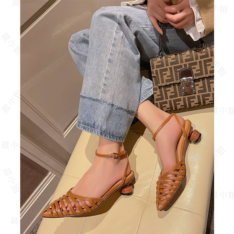 Miss Morning Up~ French retro tip tip with hollowed and coarse sandals female summer