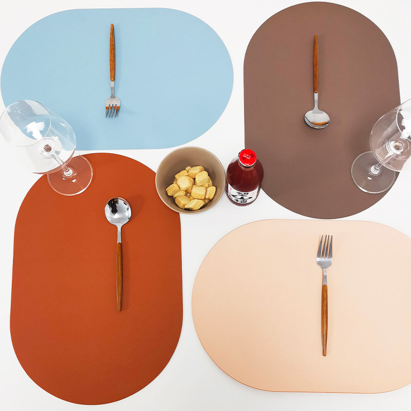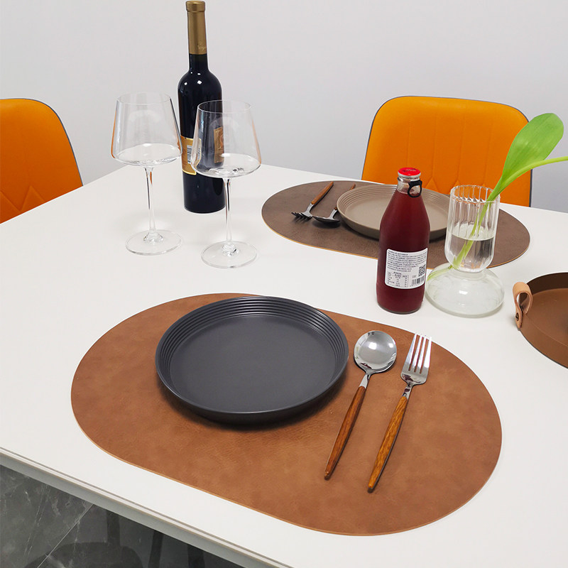 Leather placemats new Chinese-style household oval heat-insulating western meal mats outdoor waterproof and oil-proof Nordic style anti-scalding table mat