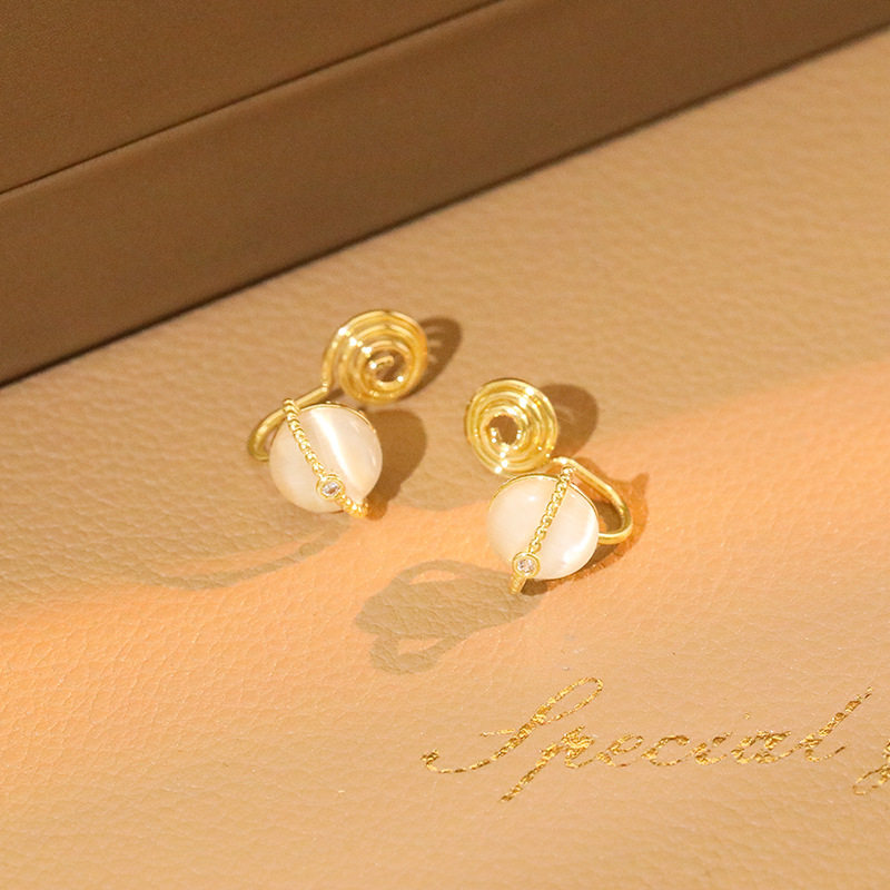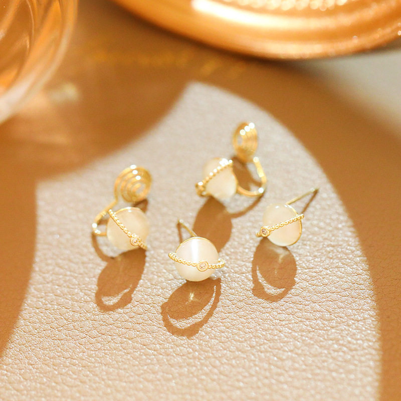 Ottles Discount Store Withdrawal Cupboard Clearance Clear Cabin Pick Up 18K Gold Cat Eye Stone Earrings Outletts Female Accessories