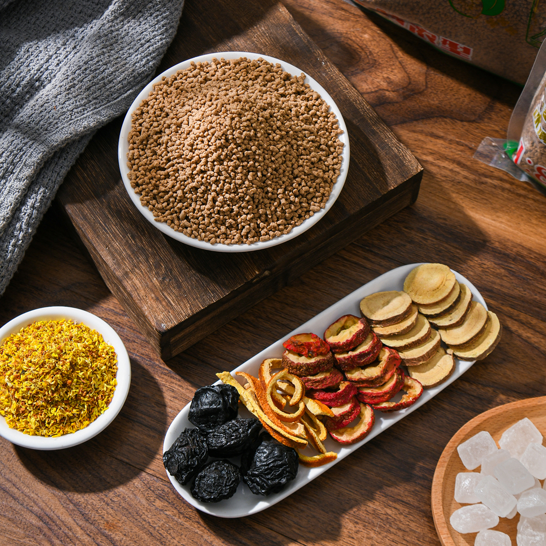 Edible glucose white sugar hawthorn umelicorice dried orange peel sweet-scented osmanthus (labeled as packaging)