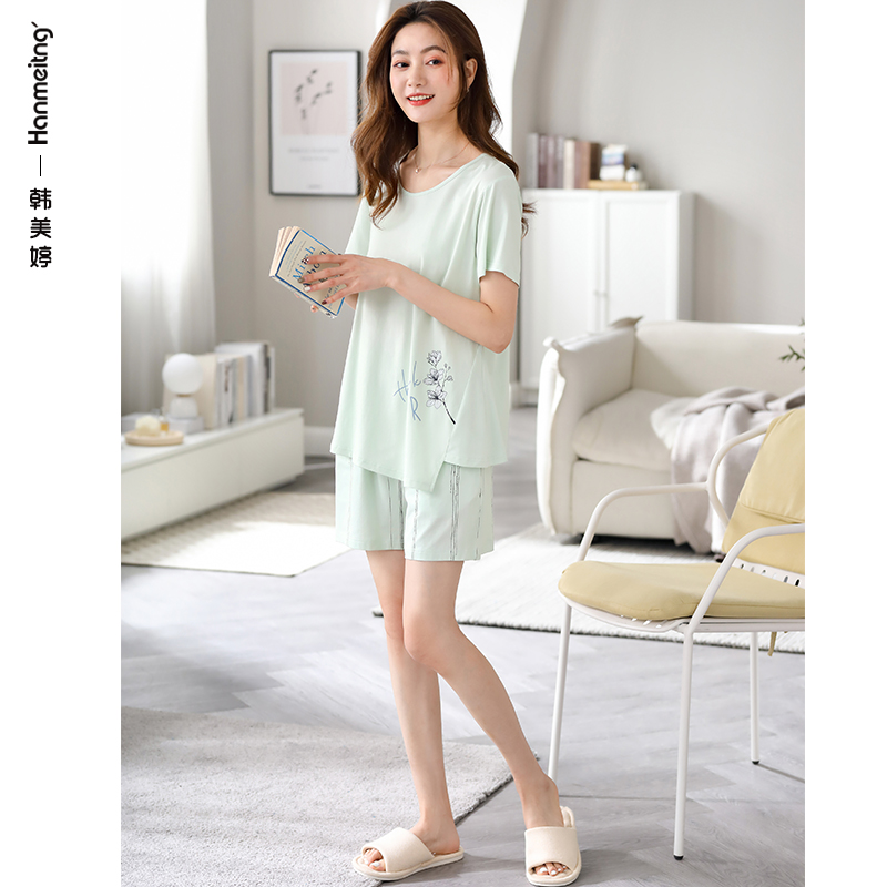 Modale Pajamas Lady Summer Korean Version Freshener Shorts Shorts Shorts Home Conserved Summer Ice Silk Big Size Suit