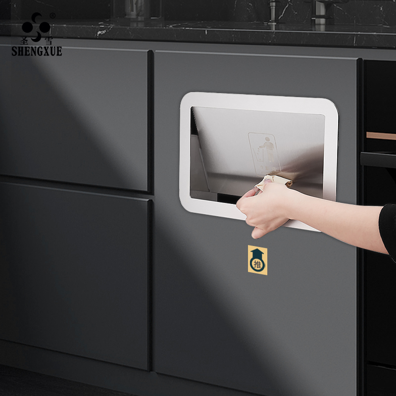 304 stainless steel hidden side open trash cans cover embedded shopping mall toilet public place