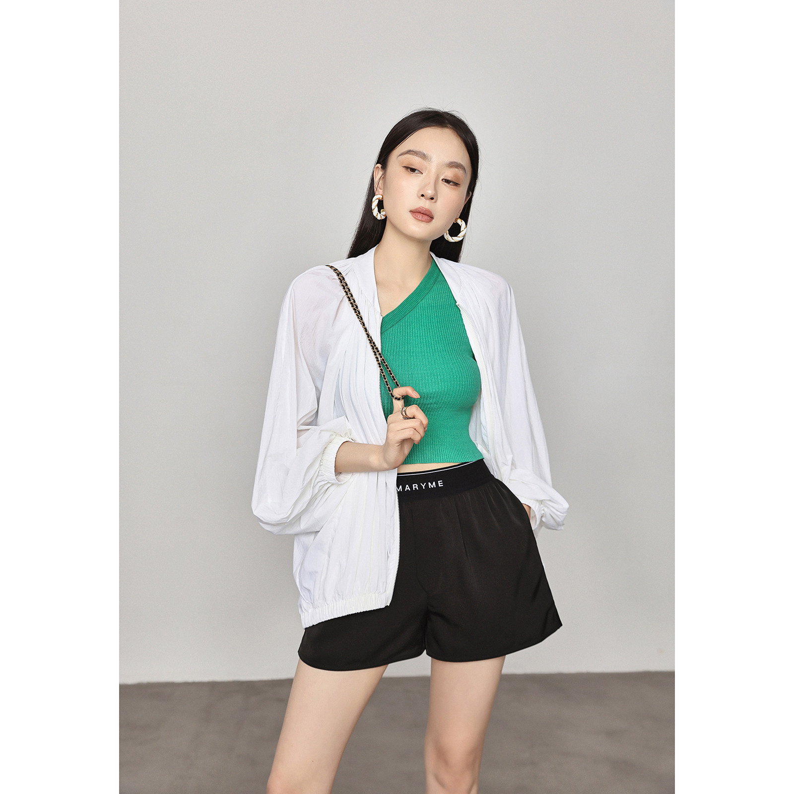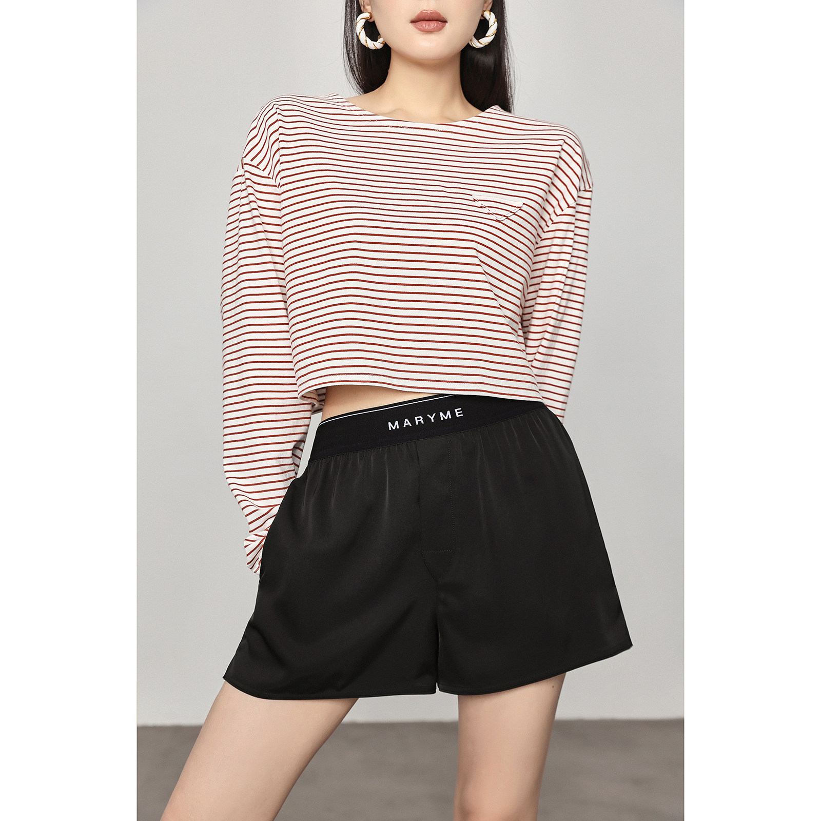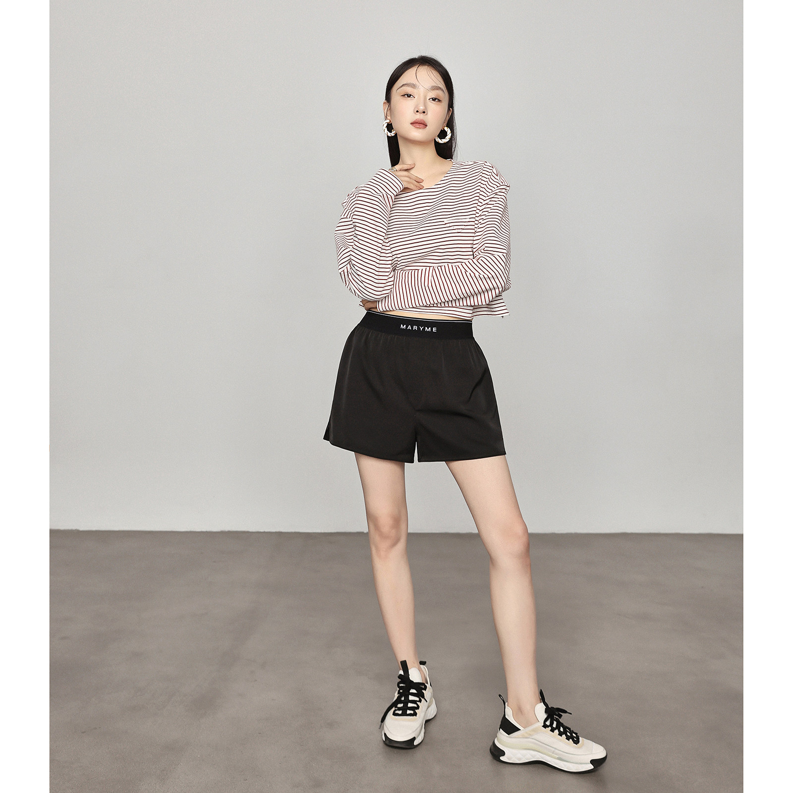 MARYME Summer custom rubber waist slim straight tube micro - cone leg sun - proof pants a word shorts for small black pants