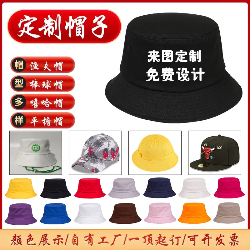 Fisherman hat custom logo embroidered printed word male and female child pelvic hat large hat peak pure cotton double-sided sunscreen sunhat son-Taobao