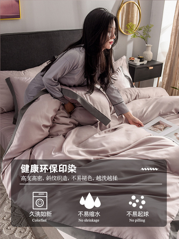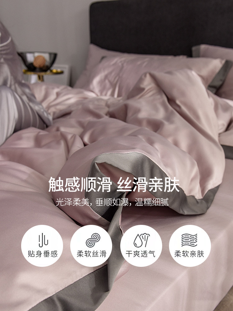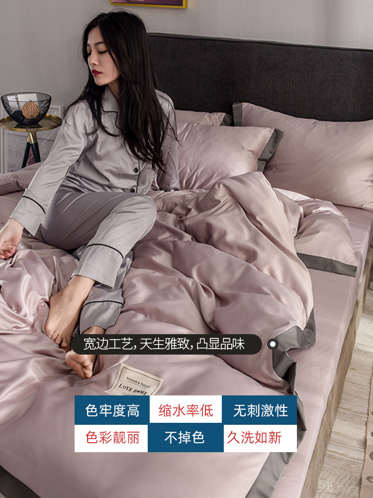 Ice silk summer cool by four sets of sleeves Naked Sleep Light Extravagant Advanced Sensation Washable Real Silk Bed Bedding Bedsheet