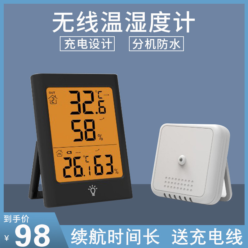 Indoor and outdoor wireless thermometer charging magnetic suction precision baby room greenhouse breeding temperature and humidity automatic backlight waterproof