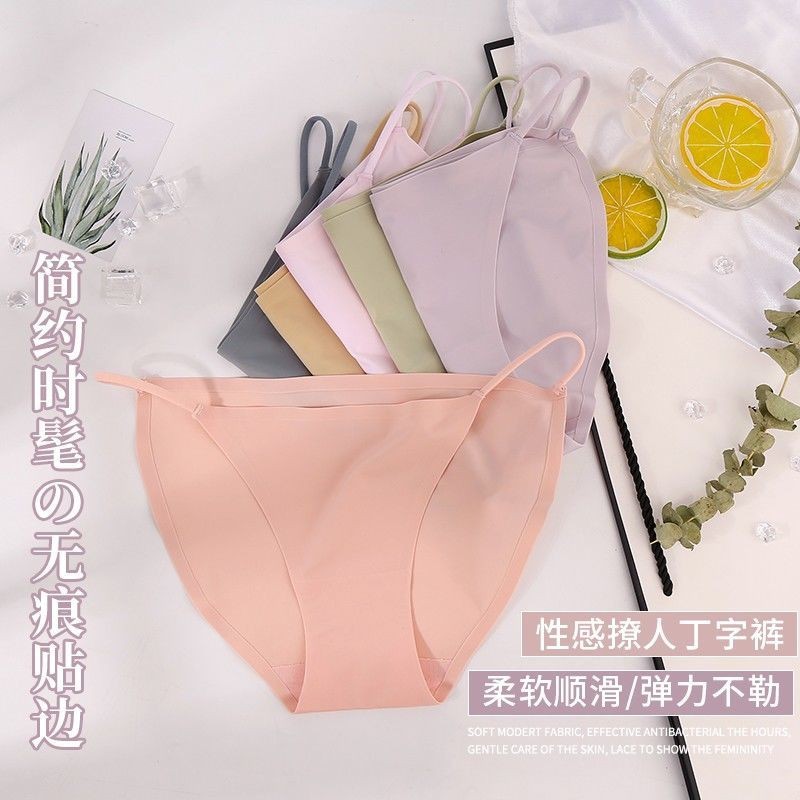 No Marks Underwear Women Ice Silk Summer Thin sexy low waist triangular pants thin pure cotton stall red lady Love tone slim band-Taobao