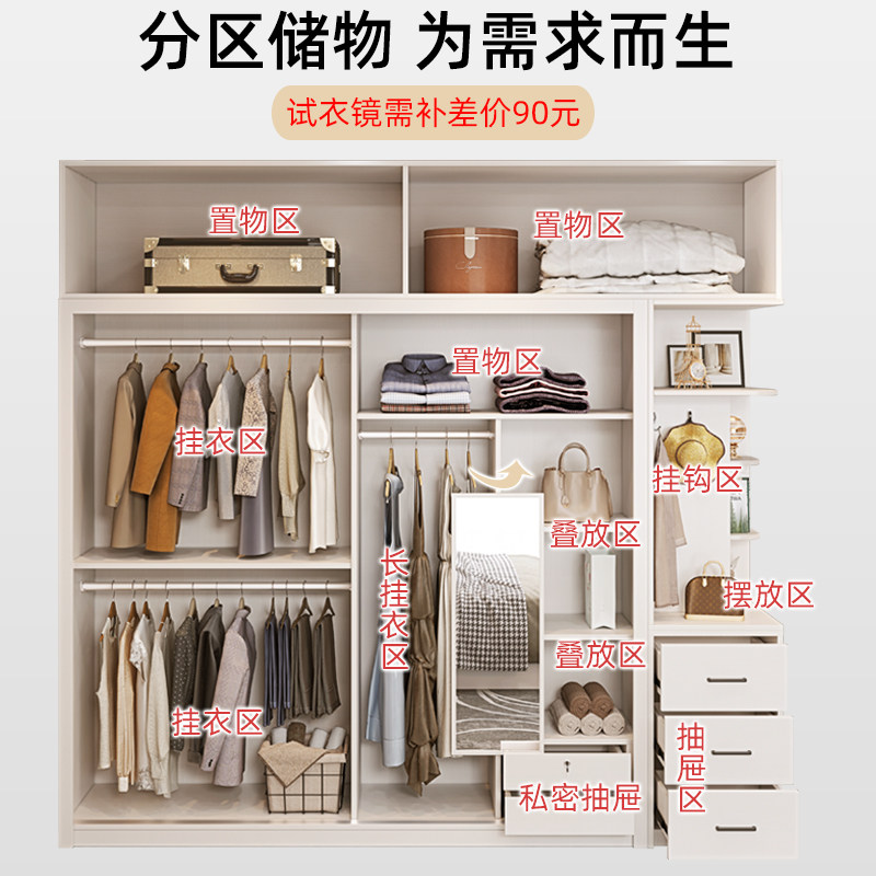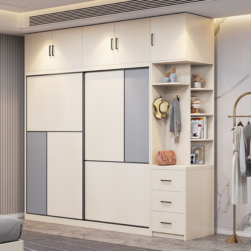 Solid wood multi-layer board bedroom complete furniture set combination light luxury simple modern double bed wardrobe master bedroom full set