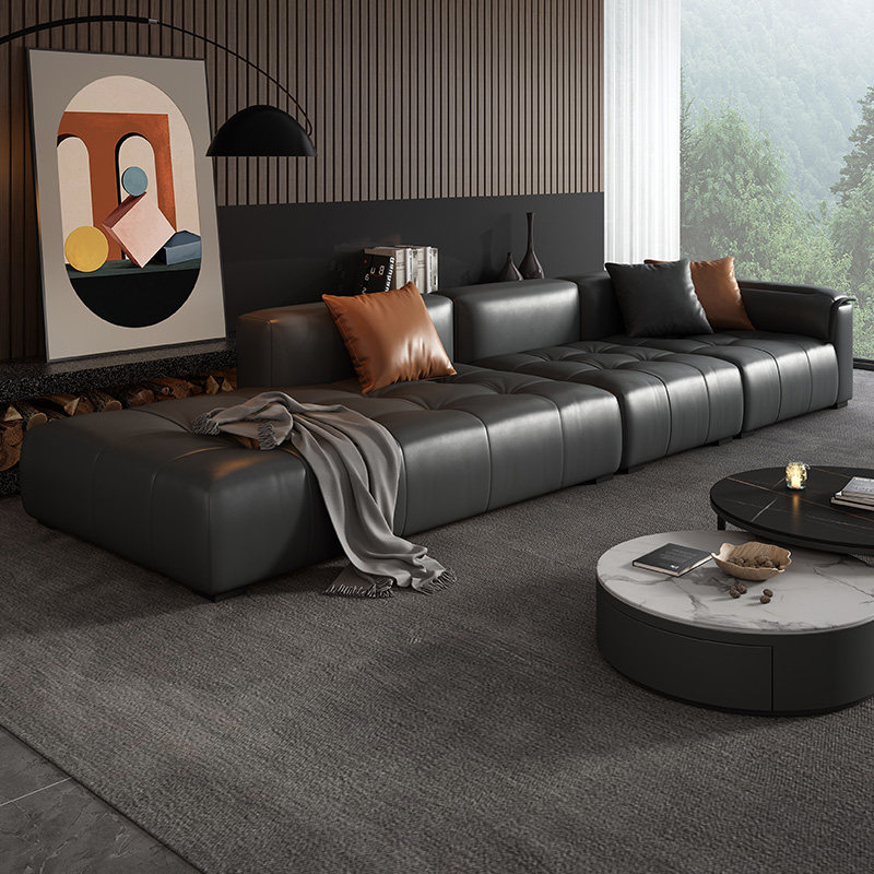 Cool Bigot Real Leather Sofa Head Layer Bull Leather-style minimalist living-room strip straight row of four modules sofa Living room