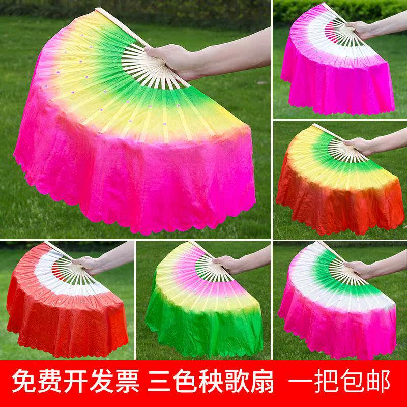 Adult Northeast 2 People turn to the Transplanting Fan Subsquare Dance Fan's three-color Gradual Layer Children Dance Fan